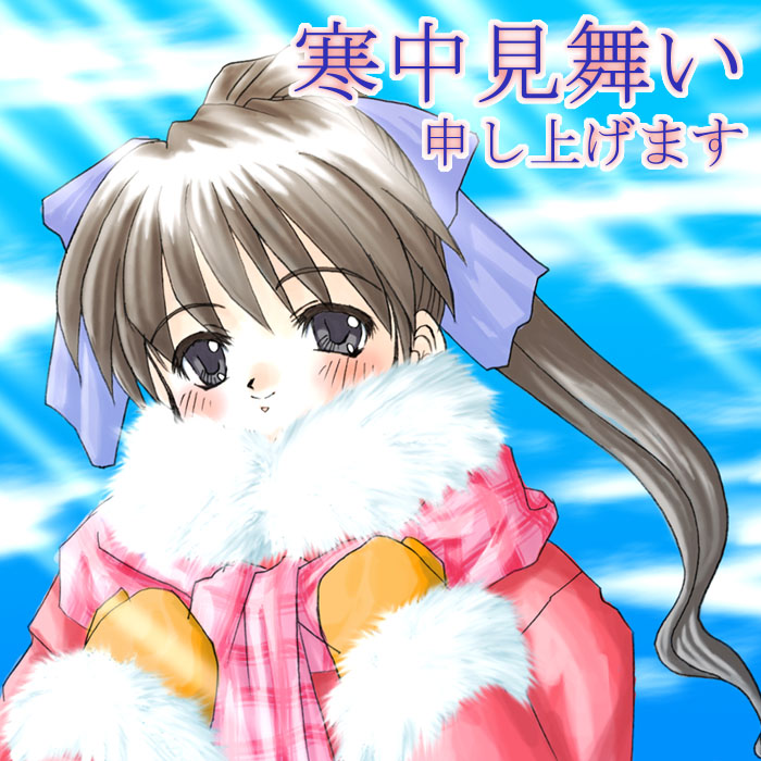 )、ポニテ娘です。やあ、空気が冷たそうで、しかし服は暖かそうな色使いが良いですな〜。